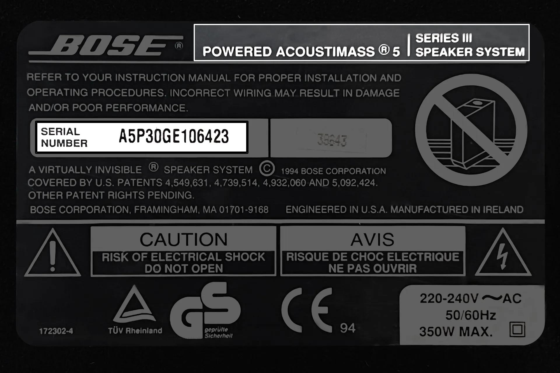If your product name is “ACOUSTIMASS 6 III HOME ENT. SYSTEM” or “ACOUSTIMASS 15 II HOME ENT. SYSTEM”, look at the serial number on your bass module (you can find your serial number as shown above in “Step 2”).